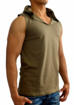 MENS HOODED SLEEVELESS TANK TOP HOOD MUSCLE BODYBUILDING GYM FATIGUE GREEN
